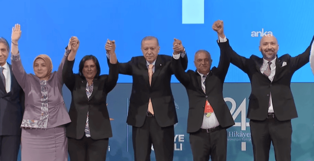 Aydın Büyükşehir Belediye Başkanı Özlem Çerçioğlu, AKP’nin 24. kuruluş yıldönümü töreninde partiye katıldı. Törende AKP rozeti takılan Çerçioğlu, Cumhurbaşkanı Erdoğan’la birlikte kürsüye çıkarak partilileri selamladı.